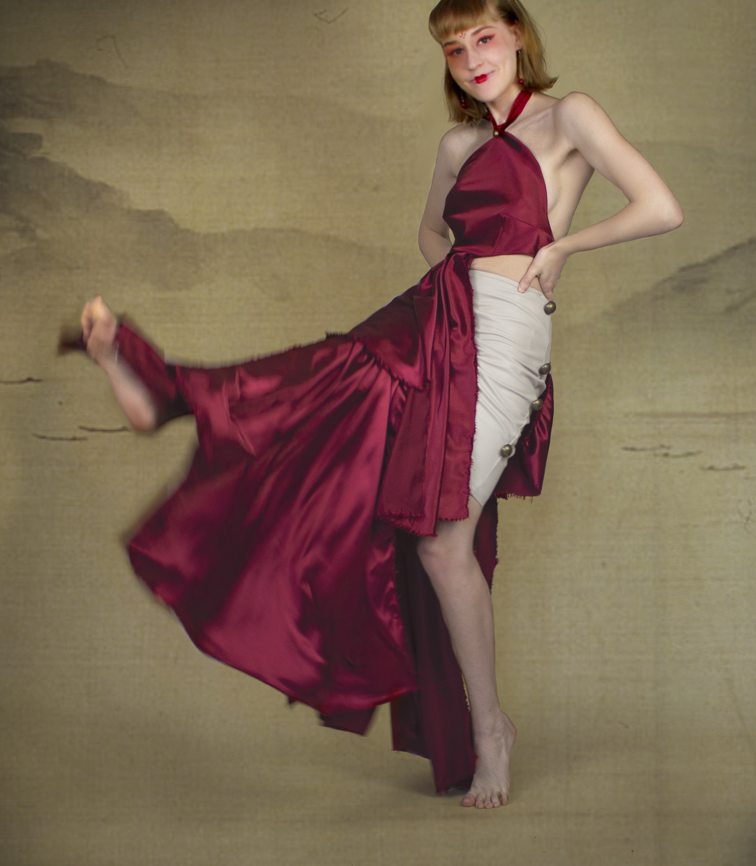 Lusi Cai 蔡缕丝 is a senior fiber major with a minor in experimental fashion at Maryland Institute College of Art. She was born in Guangdong, China, and immigrated to the United States at age 14. She has always felt the studies of her Chinese heritage to be incomplete. She maintains a high curiosity about historical Chinese culture, while constantly accepting and excavating western art and design. As a fashion designer, she applies her research to her garments. Her love for history, exquisite details, and patience are reflected in her work.